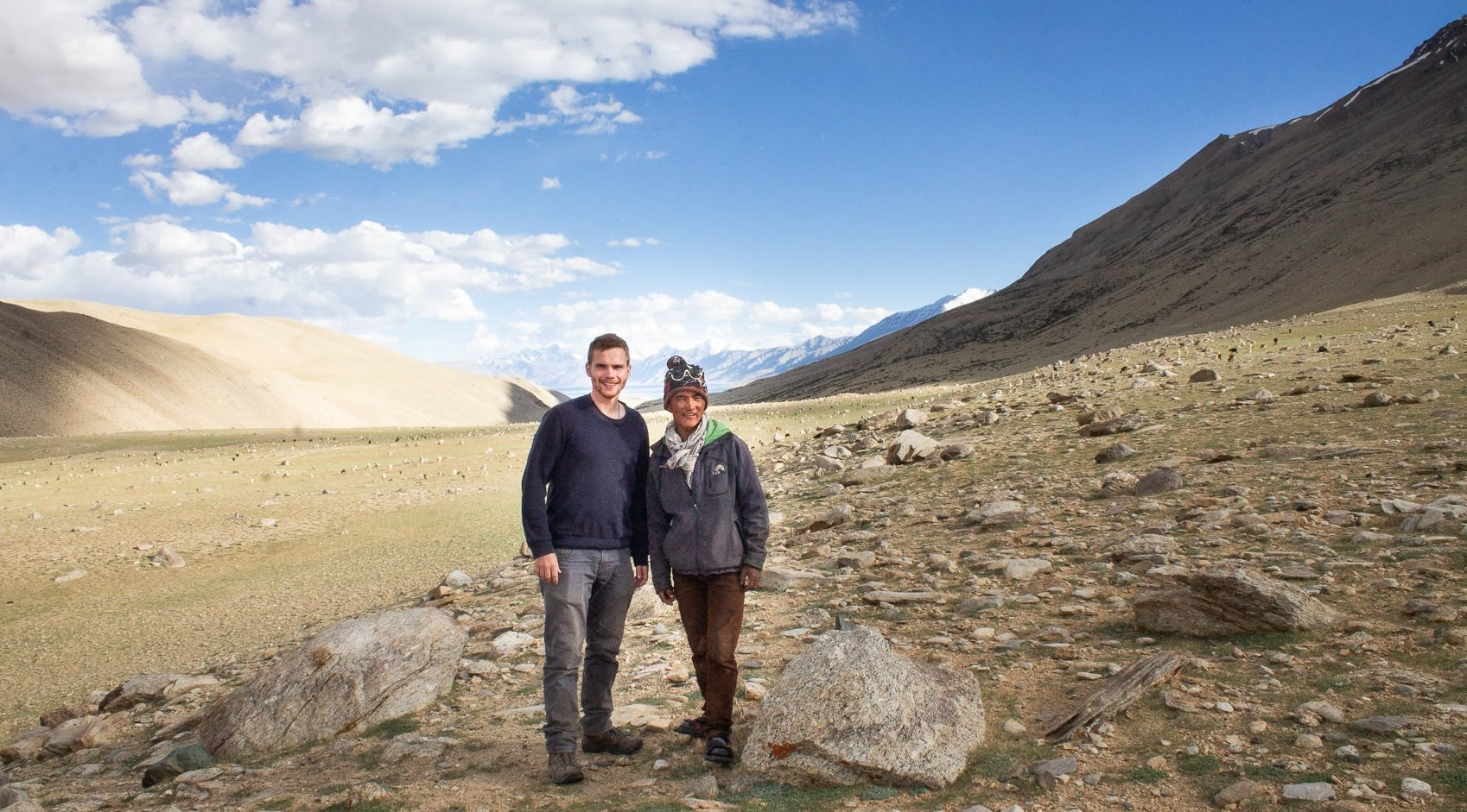 Lerne die Hersteller und die Herstellung unserer Schals und Stolen kennen. Entdecke die Himalaya‑Region Changthang und spüre, wo unser Kaschmir seinen Ursprung hat.